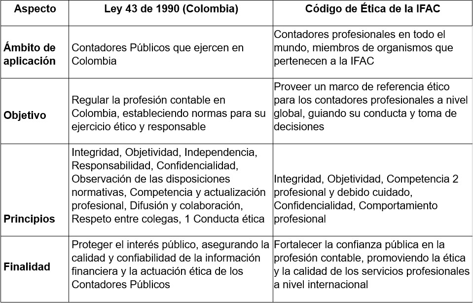 Cuadro comparativo entre la Ley 43 de 1990 de Colombia y el Código de Ética de la IFAC